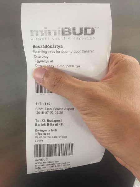 このminiBUSの特徴は、スタッフも言っていますがタクシーより安い値段(1人だと19.5ユーロ/5460フォリント)で、市内までの移動ができるということです(往復だと35ユーロ/9800フォリント)
