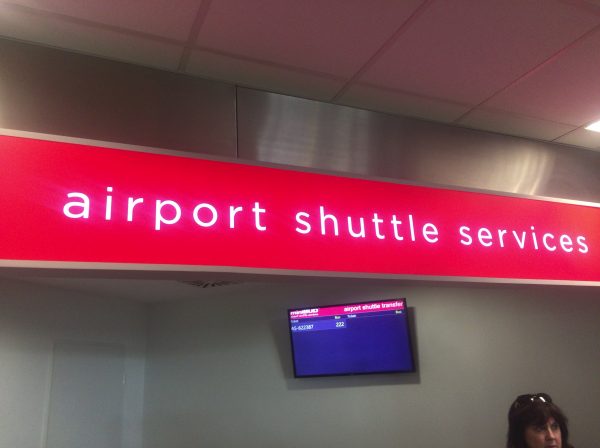 赤色が眩しいairport shuttle serviceを一度はご利用を