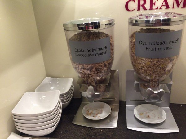 シリアルは、コーンフレークはなくてオートミールをベースにしたチョコ系とフルーツ系。ブダペスト市内のスーパーでも同じような品揃えでした。