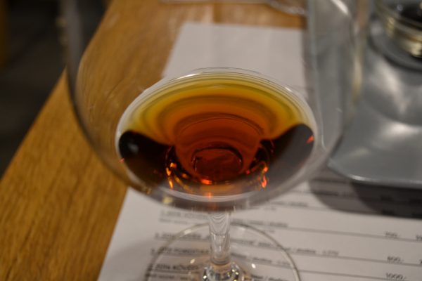このワインは、貴腐ブドウの中でも9年以上寝かせたものだけを使用する、トカイアスー・オブ・トカイアスーとでも言うべき銘柄で、お値段なんと、20mLで2500フォリント(約1000円)という高さ。飲み比べの前半で出てきたワインは、100mLで約500フォリント(200円)~、トカイアスーのプットニョス6でも3000フォリント(1200円)という値段なので、いかに高いかが分かります。ちなみにこのエセンツィアは、ボトルで注文すると0.375Lで45000フォリント(約18000円)というお値段。ハンガリー価格なので安く感じてしまうかもしれませんが、日本感覚ならゆうにボトルで5万円は超えるでしょう。
