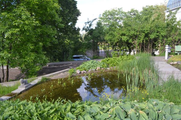 屋上に続く道は、ビオトープみたいになっています。