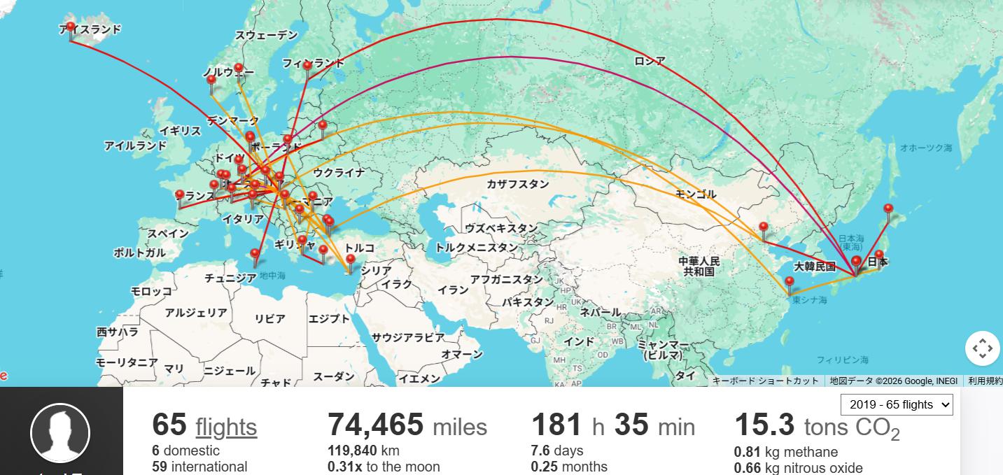 そして、当時から把握していたことなのですが、海外に住んでいた2019年に、当時の自分にとって過去最高、そして恐らく、今後も破ることができないであろう「65回の飛行機搭乗(通称:65レグ)」を達成していたのです。