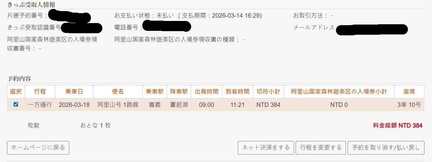 阿里山森林鉄道を個人旅行で乗る場合、予約方法は