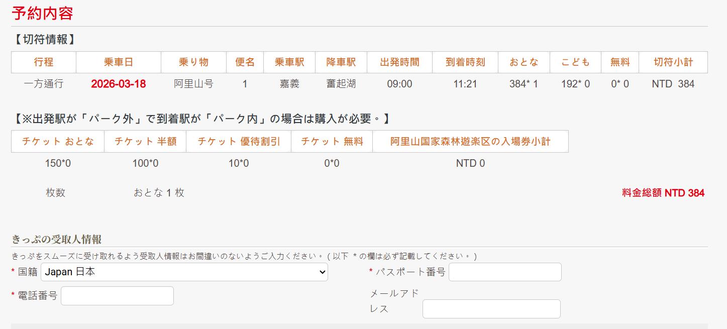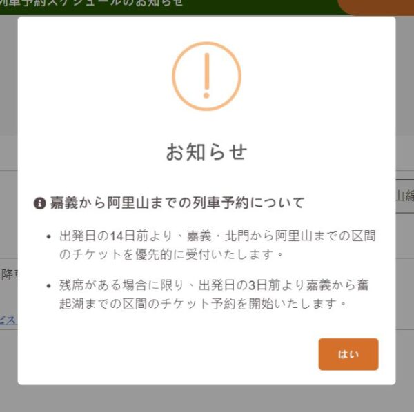 1.阿里山森林鉄道の予約開始時間