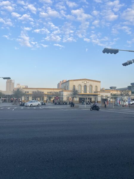 遠目ではありますが、嘉義駅の駅舎全体像です。時計のある中央の建物の左下にある、少し突き出たところに、阿里山森林鉄道の窓口があります。