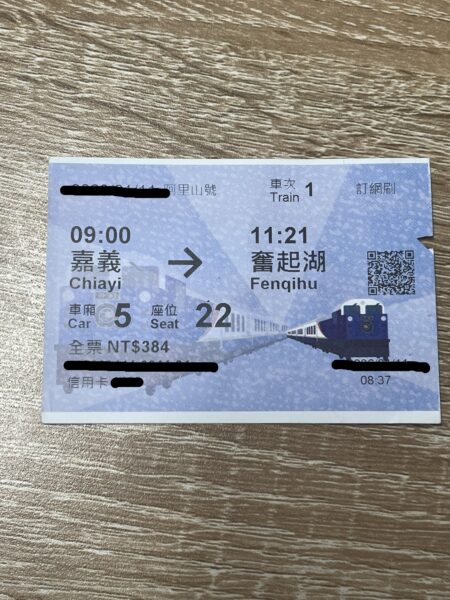 嘉義→奮起湖は、大人ひとり384台湾ドル(約2000円)となっています。考えてみたら良心的、というよりもむしろ、安すぎるように感じる料金ですね。