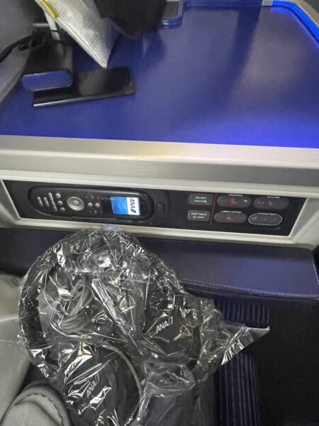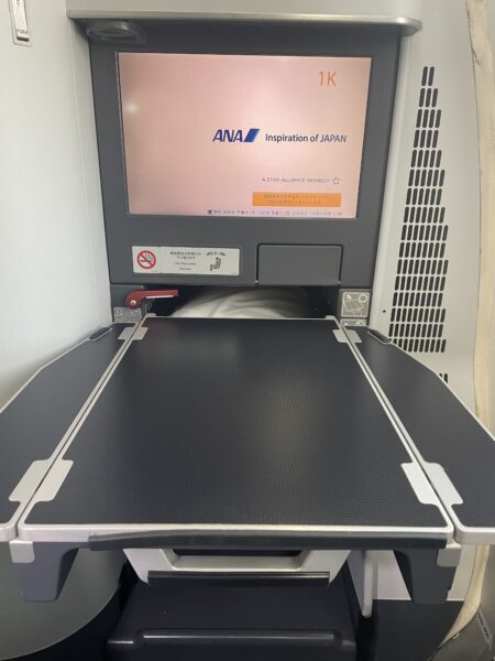 座席のリモコンは、座席の前後移動、リクライニング、シームレスなベッドメイクなど、細やかな設定ができるようになっています。1年前に乗った、羽田からウィーン線のB787-9よりも新しい機材だからか、この利便性の高さには感動しました。