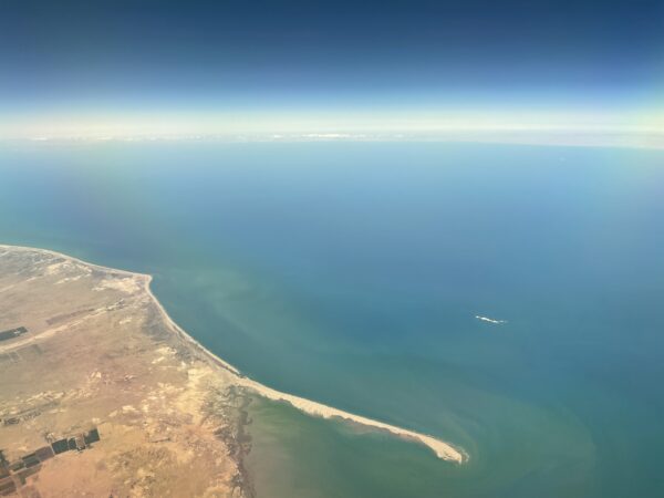 写真上に見えるのがバハ・カリフォルニア州の半島で、下にはカリフォルニア湾と、本土の黄土が見えます。