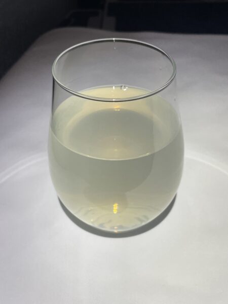 また、個人的にお気に入りの、かぼすジュースを合わせました。最近は国内線のプレミアムクラス(ファーストクラス)でも出されるので、嬉しい限りです。