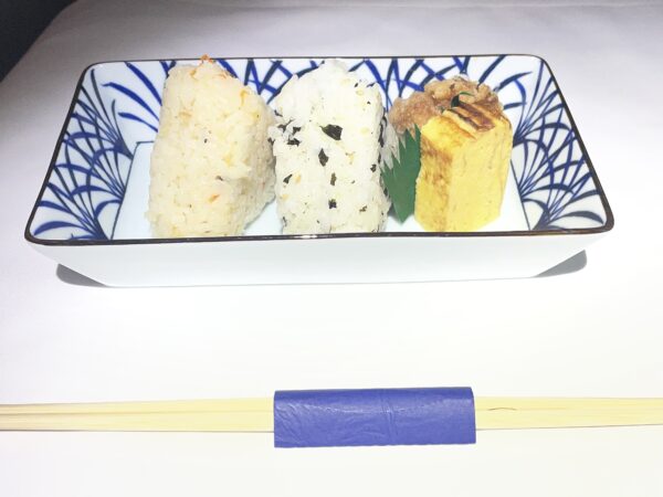 2回目の食事の後、到着までの間に、おにぎりとヨーグルトを食べました。