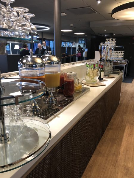 あくまで、シェンゲン外ラウンジと「比較して」の話ですが、テーブルと椅子の数が多くて、それらの面積が広くて、食事が用意されているスペースが狭いです。