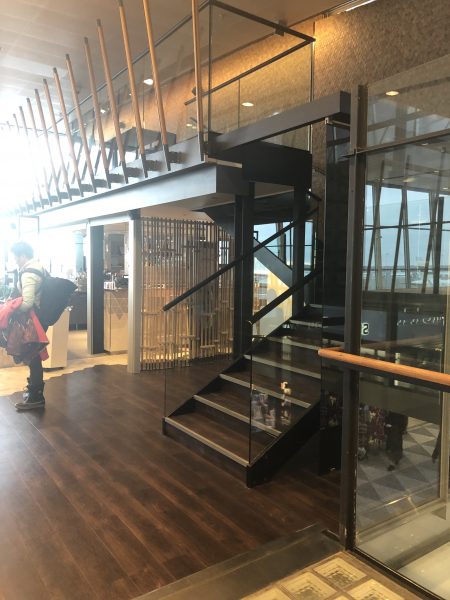 Aspire Loungeは、搭乗口27番28番の向かい側にあって、搭乗口のあるフロアの1つ上。エレベーターか階段を利用します。