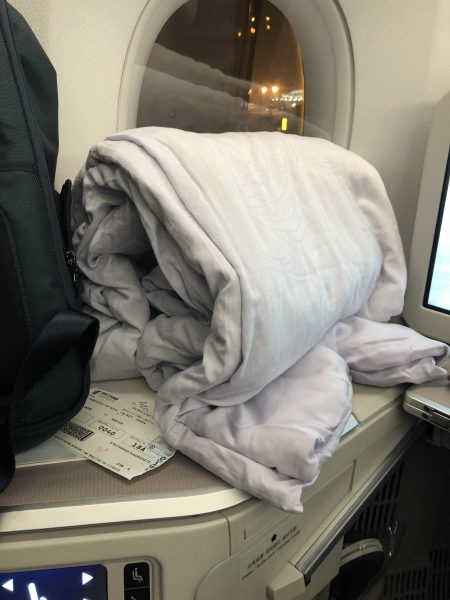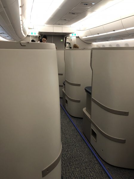しかも沖止めの場合(少なくとも、今回利用したフライトに限っては)ビジネスクラスの優先搭乗も、上級会員の優先搭乗もないようで、僕は遅めにバスに乗って、ビジネスクラスの室内にはほぼ最後に乗り込みました(幼い子どもがいる家族連れの方などの優先搭乗はありました)。