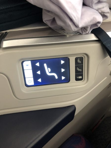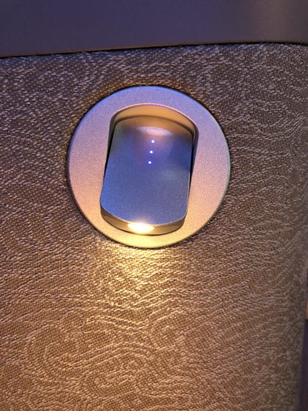 読書灯は、背後から棒が出ているものに加えて、フルフラットになったとき用に、横に格納されているものもありました。