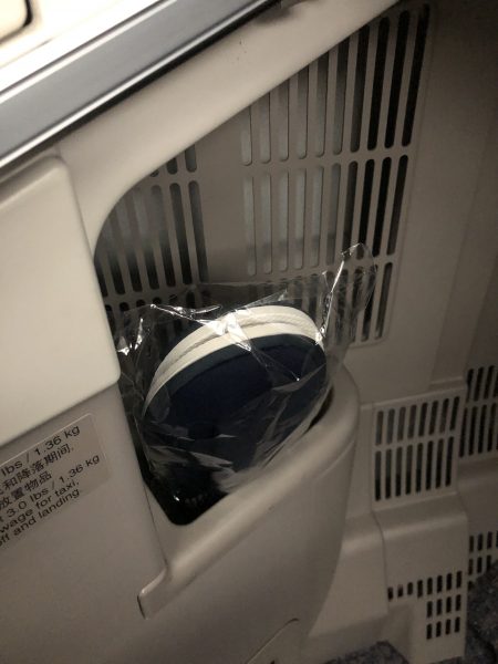 上の内容と時間軸が前後しますが、機内に入った直後の一コマ。結構横向きなっているのが分かると思います。
