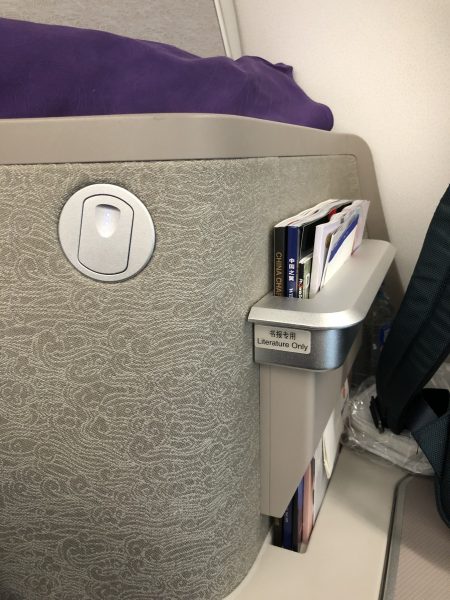 機内誌一式は横のスペースに掛けられています。が、ほとんど中国語なので読みませんでした。