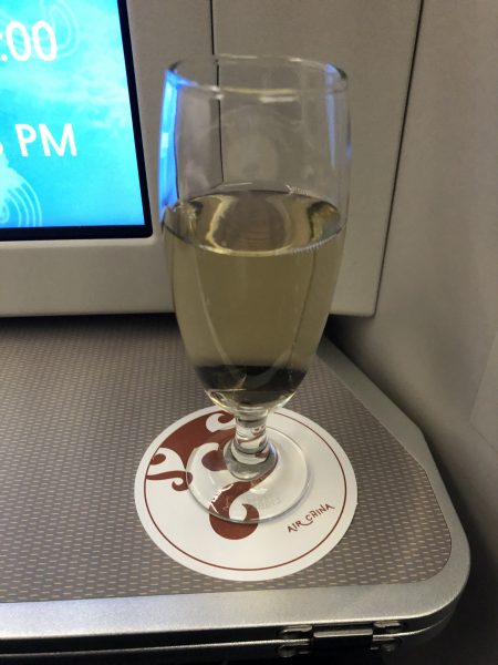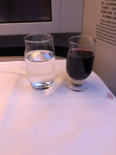 出発が深夜1時半頃なので、正直胃に何かを入れる気にはならないのですが、それでもウェルカムドリンクと離陸後にワインのサーブはされました。