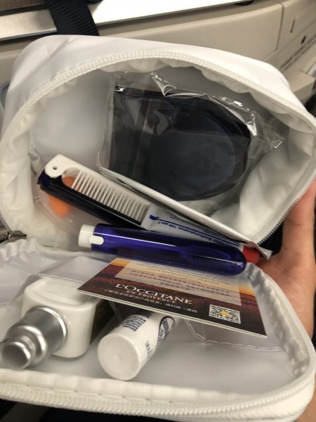 また、アメニティグッズはポーチに入って支給。荷物になるので持ち帰りはしませんでしたが、化粧水なども入っていたのには驚きました。