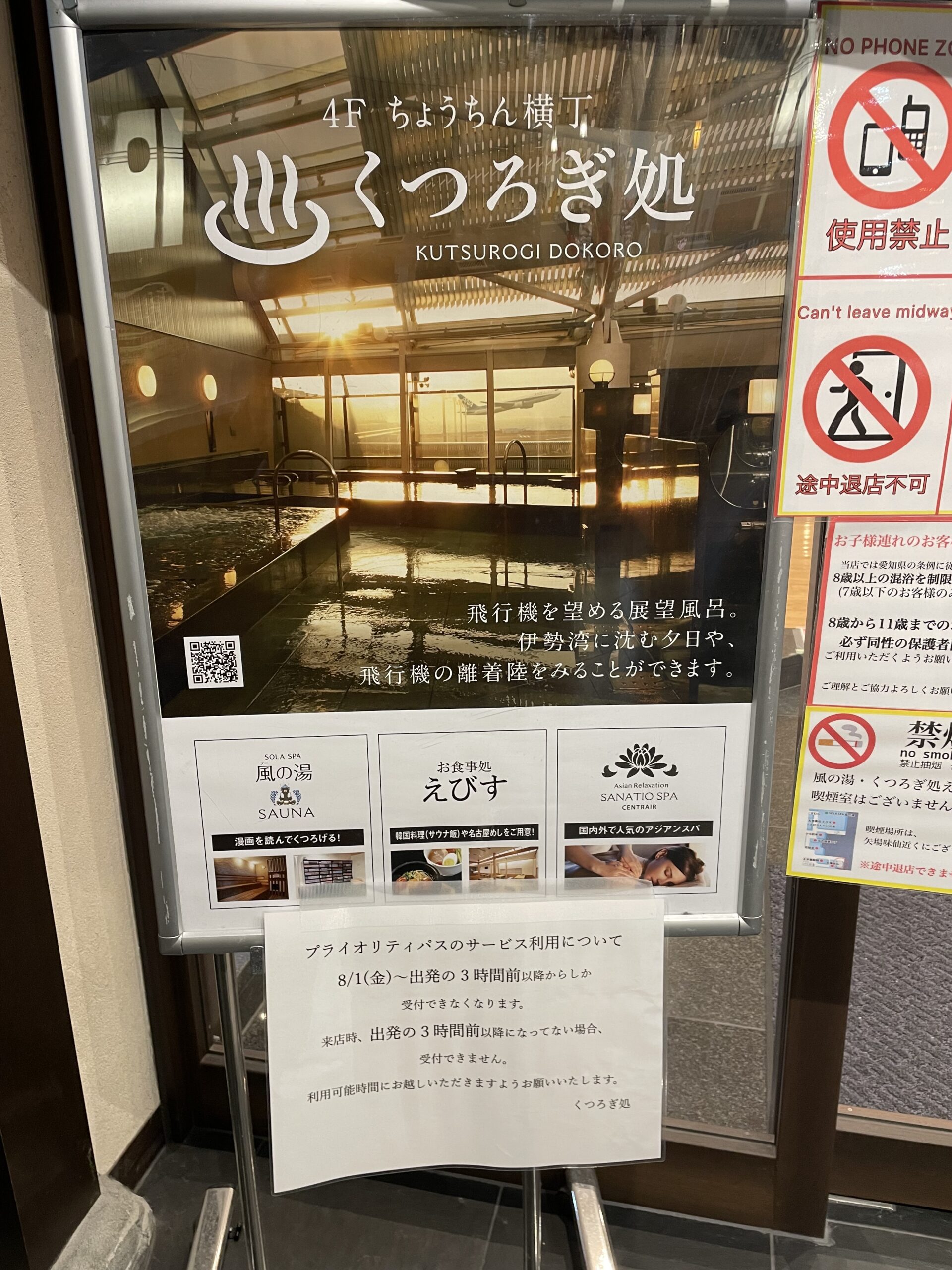 セントレアには、プライオリティパスで使える温泉「SOLA SPA風の湯」があります。