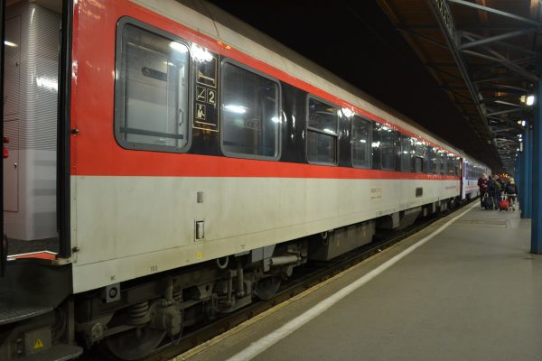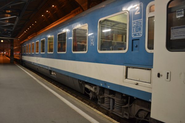 こちらはハンガリー国鉄の座席車。分かりづらいかもしれませんが、車内はコンパートメントの6人又は8人一区画の個室となっていて、満席だと横にもなれないし足も伸ばせません。僕が利用したのは11月の閑散期でしたが、それでも週末だったので利用客は多かった印象です。短い区間の利用ならまだしも、夜を徹しての移動にするなら、寝台を利用する方が便利だと思います。