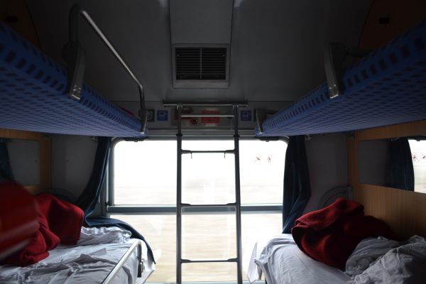 ・個室寝台(3人用)→日本のような「完全個室」ではありませんが、男女別で3人が上段、中段、下段のベッドに分かれて寝ます。以前使ったことがありますが、こちらも一応三段式になっているため、ベッドの上での更衣などはほぼできません。料金が一番高いのがこの寝台で、荷物を置くスペースはきちんとあります(ただ、一番大きいスーツケースは避けるのが無難)。クシェットとの料金がそこまで変わらないことも多いので、横になりたい人は、繁忙期か閑散期か、荷物の数はいくつなのか、ということを加味してクシェットか寝台車かを選べばいいでしょう。