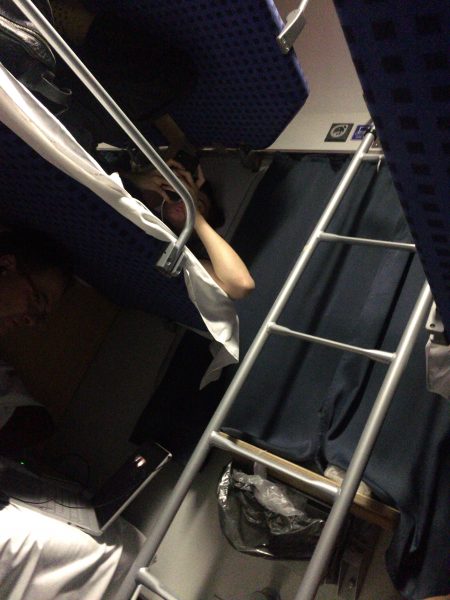 とにかく、車内スペースが想像以上に狭いので、満室じゃない場合は空いているベッドに荷物を置いて、着替えなくてもいい恰好で乗り込む、というのがいいかと思います。ブダペスト~ワルシャワは13時間を超える移動時間ですが、ほぼ横になる、というというか横になることしかできません。