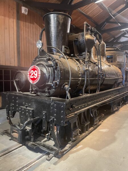 車庫の中にはかつて走っていたSLが展示(おそらく、動態保存)されており、看板で鉄道の歴史などを知ることができます。