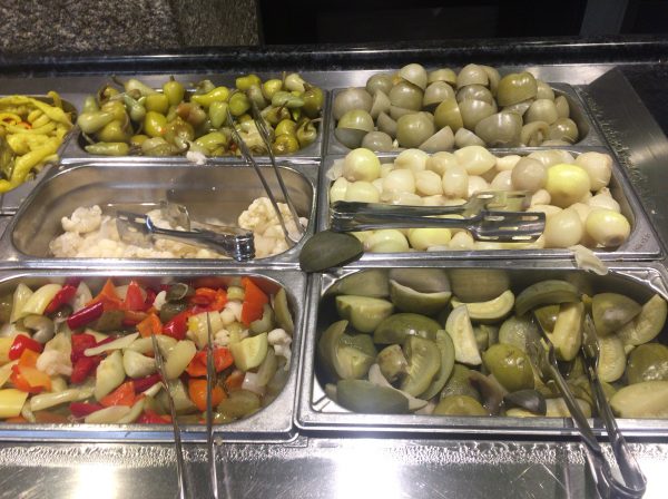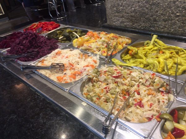 サラダ類も豊富ですが、ハンガリーはヨーグルト和えのようなスタイルのサラダが多く、日本の野菜サラダのようなものはここでは食べられません。