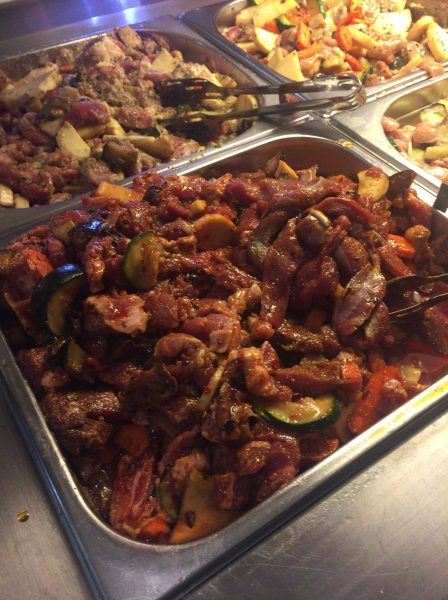 興味深いのは、生肉と野菜をお皿に取ってシェフに焼いてもらって(BBQのようなもの)、それを食べることができるというもの。生肉だけを見ると「ユッケみたいに食べるの?」と思ってしまいがちですが、奥にシェフと鉄板があるので、くれぐれもそのまま口にはしないで下さいね。