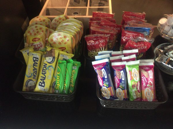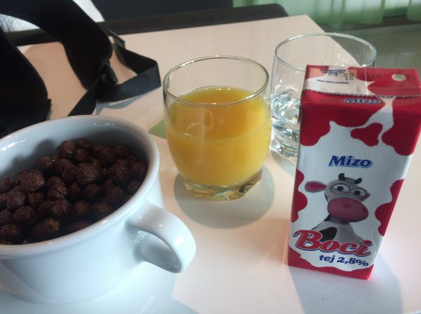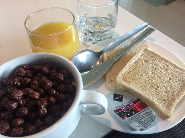 明るくて落ち着く雰囲気は二重丸を与えたい評価ですが、シリアル用のミルクを紙パックから入れないといけない点と、お手洗いがラウンジ内にないことが評価を下げています。