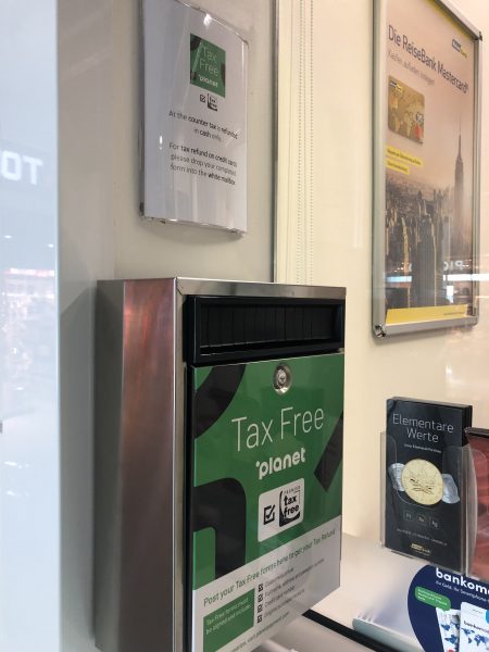 「切手を貼ってください」という、なんとも不親切な封筒だったので、このポストに切手がない状態で投函して、きちんと印字された住所に届くのかどうかが分かりませんでした。恐らく、Planetpaymentの免税書類専用ポストになっているので、切手なしでも封筒に入れれば届くと思うのですが、窓口のスタッフさんに聞いた方が確実かと思います(僕は、日本に帰ってから郵便局で切手を買って国際郵便で送ろうと考えたので、ミュンヘン空港では確認をしそびれました)。