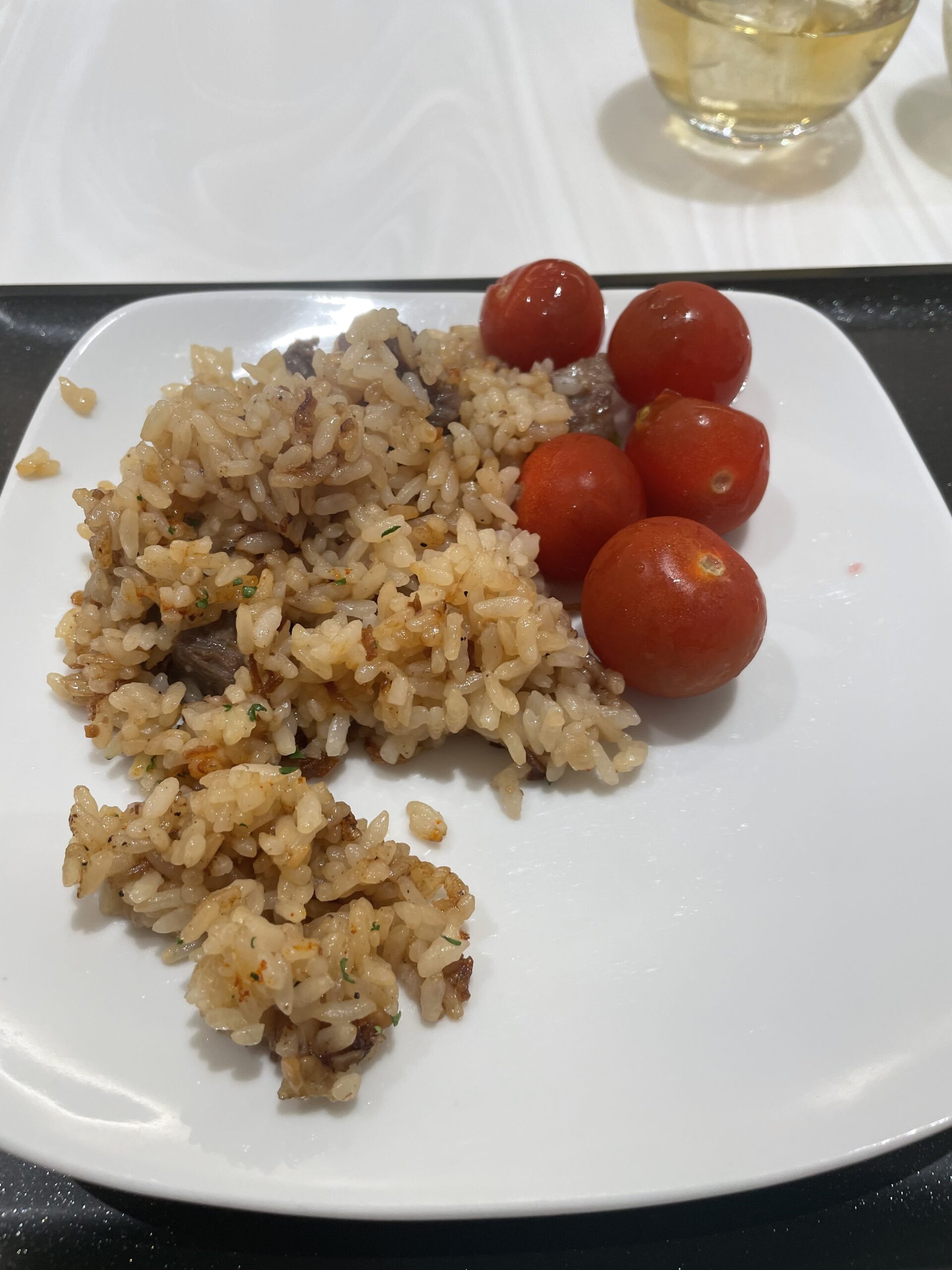 1回目の機内食は、日本海上空に抜けて韓国上空に入るか入らないか、くらいのタイミングで始まりました。この時点で、日本時間24時前くらいでしたでしょうか。完全に夜食扱いになりますね。