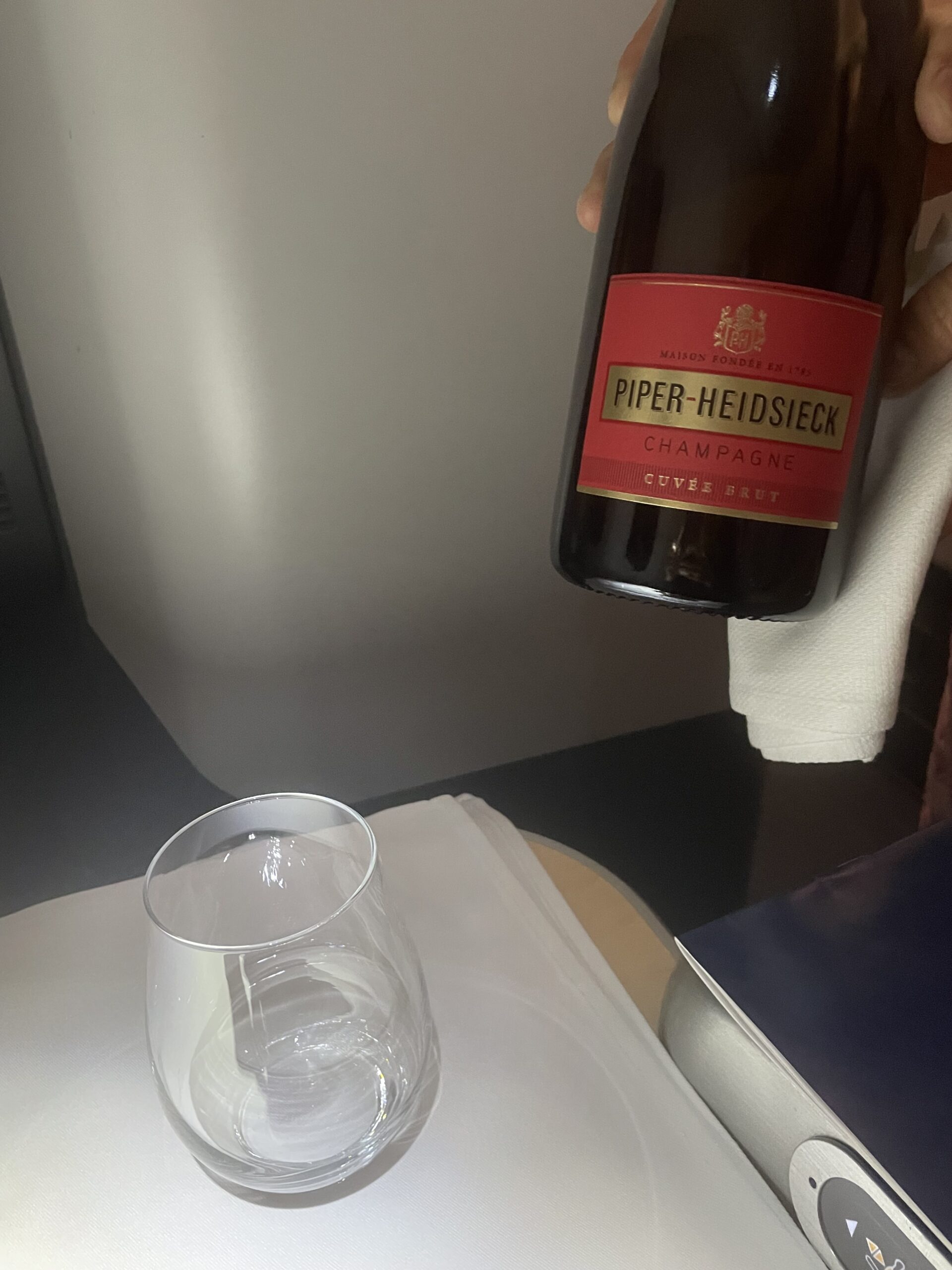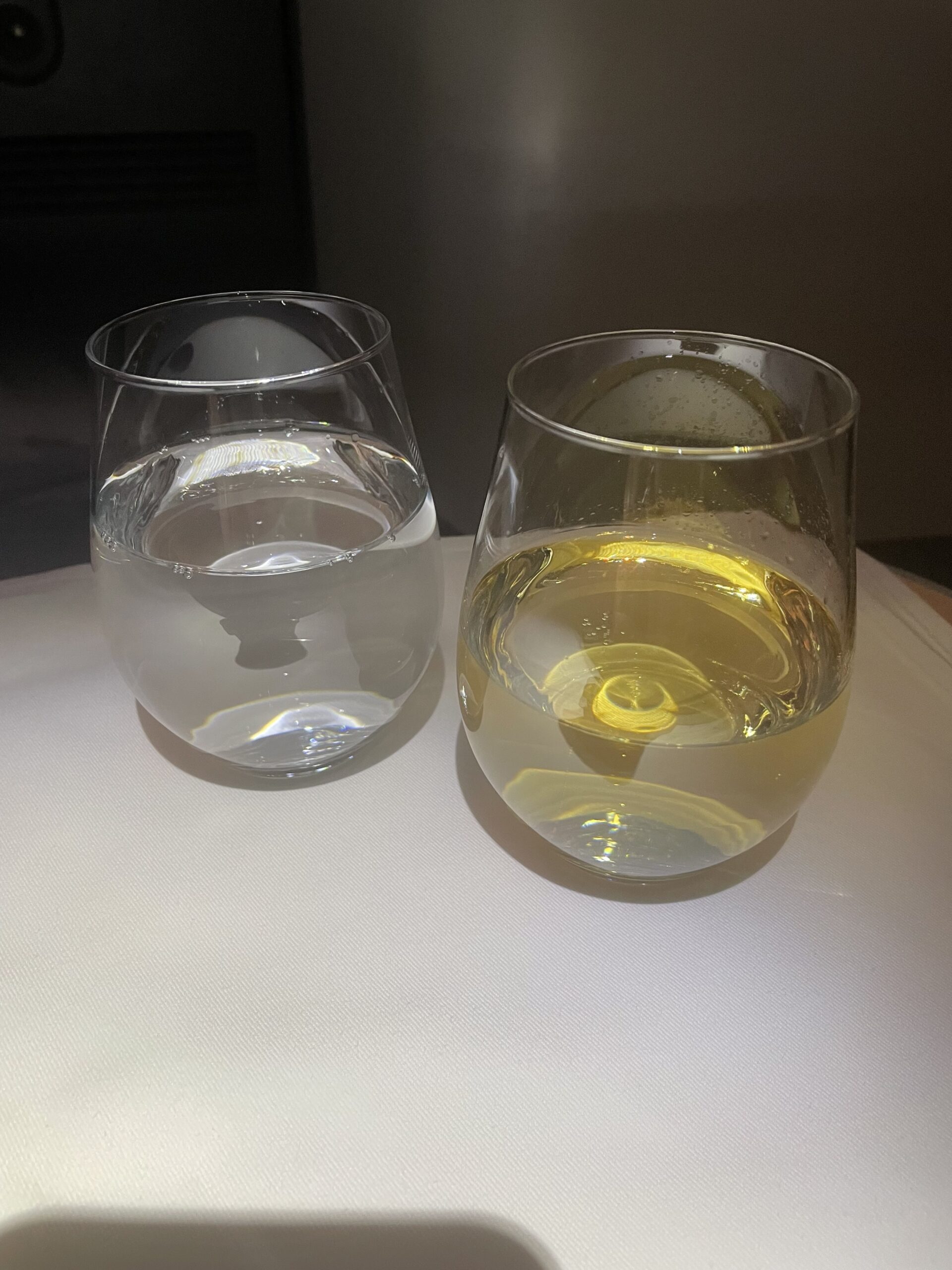 で、食事の前の1杯目のドリンクは、シャンパンにしてしまいました。離陸前の禁欲はなんだったのか…。