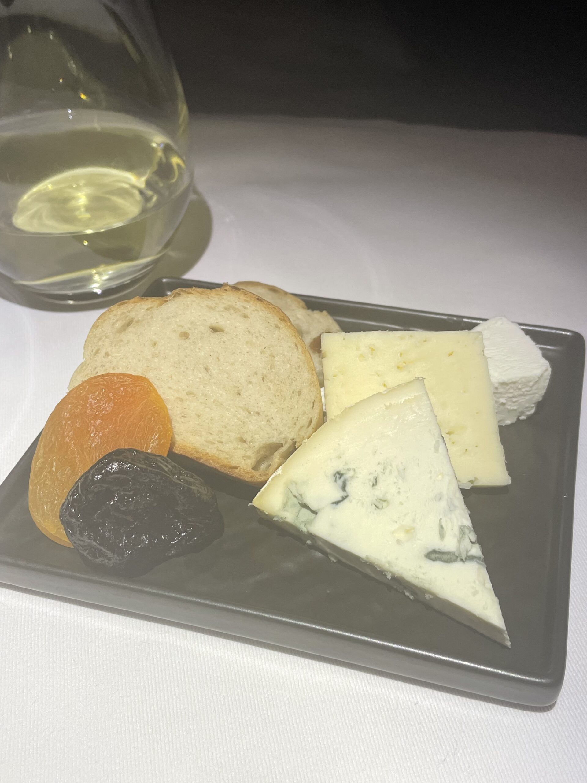 食事の後は、歯を磨いて横になったのですが、2時間半ほどで目が覚めてしまったので、チーズの盛り合わせと白ワイン(マコン)を少しずついただきました。