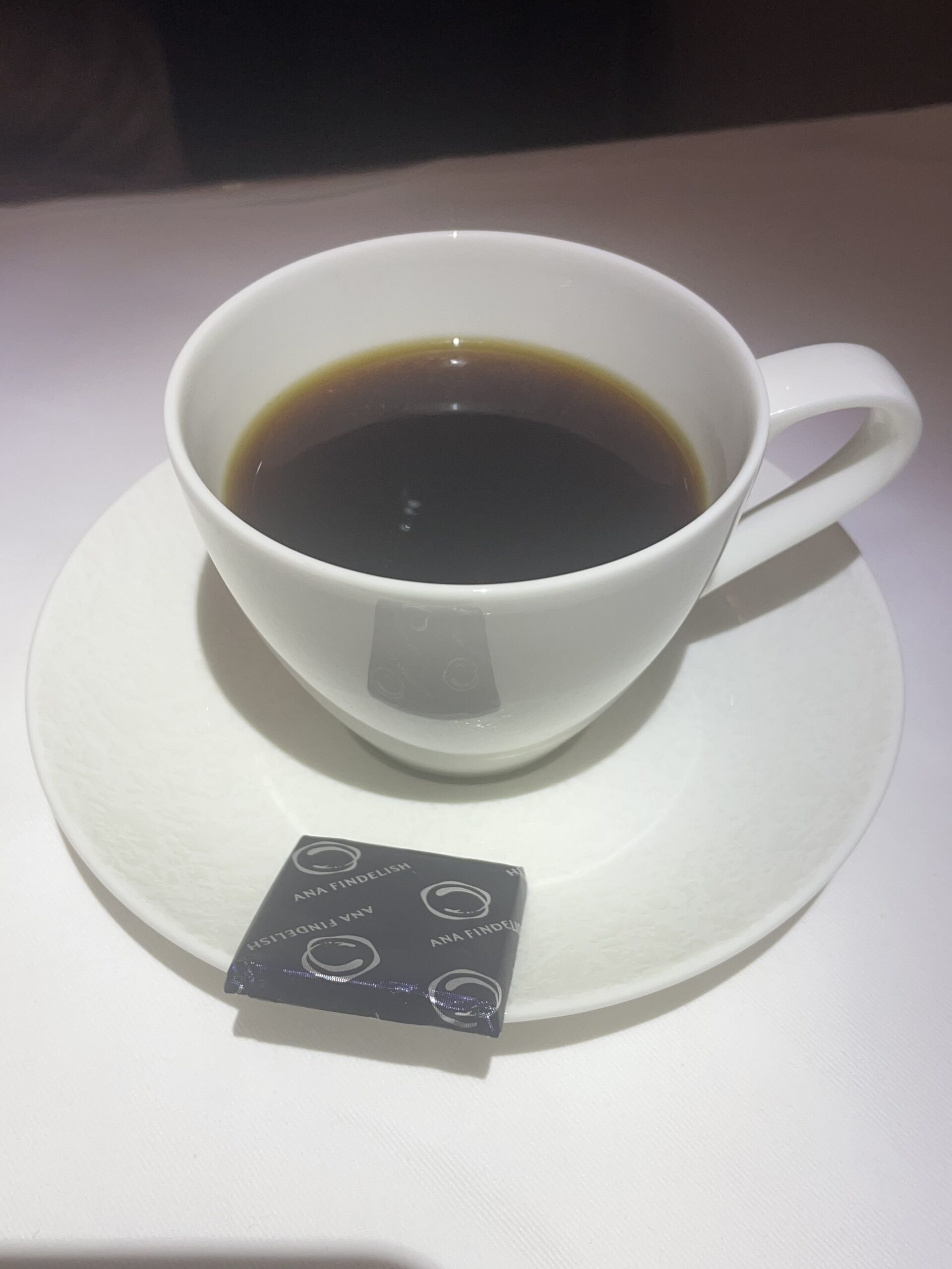 ANAオリジナルのコーヒーと、チョコレートもいただきました。目覚めの一杯としてとても美味しかったです。