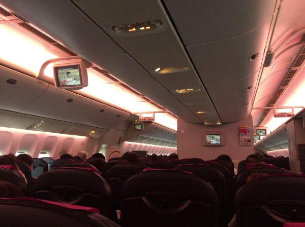 このフライトは3月の日曜日午前中の便。空港に到着したときには満席となっていました。