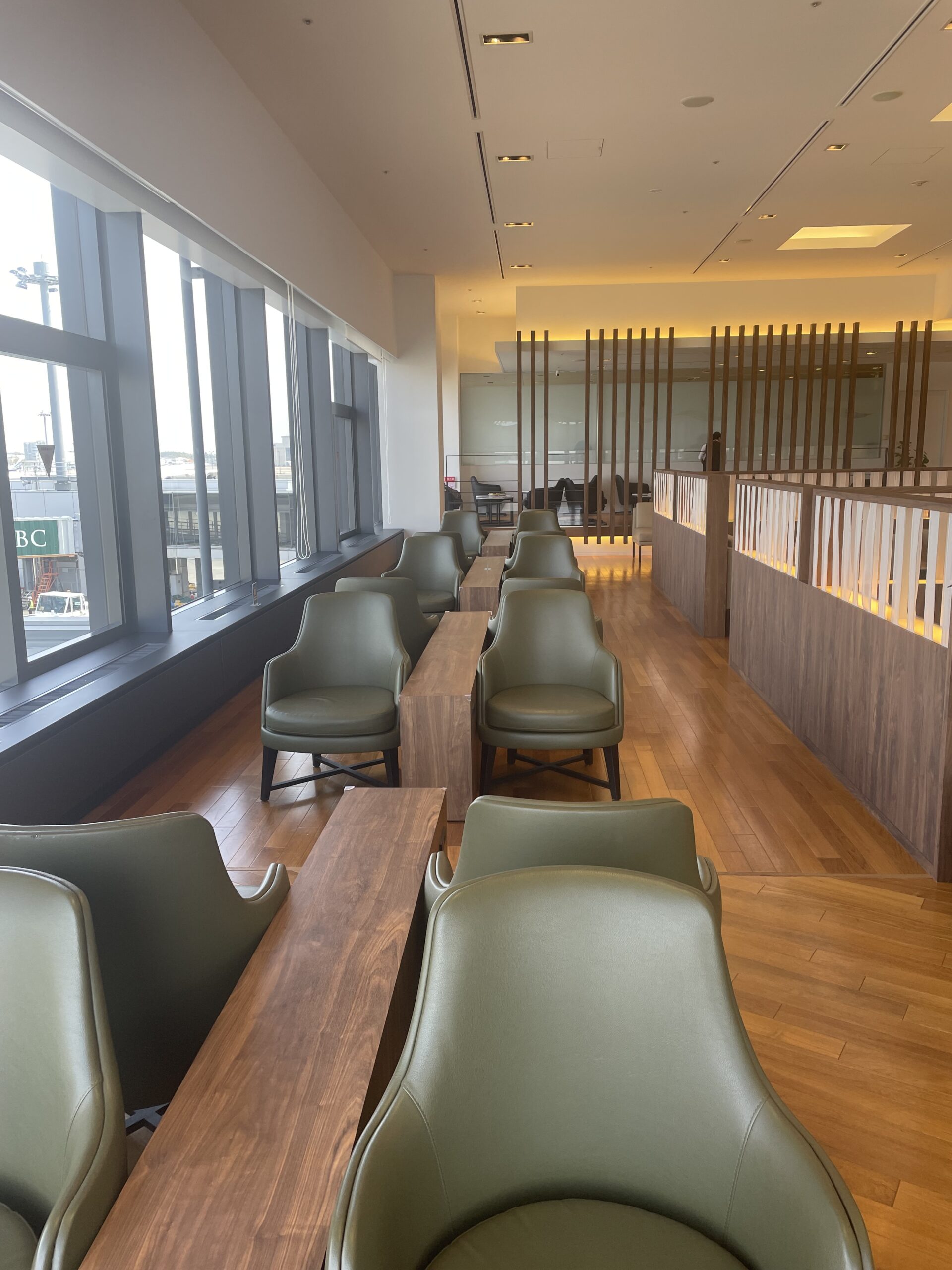 一方で、ラウンジ内部のレイアウトには工夫が見られます。食事エリアがある右側とは対照的に、左側には一人用の作業スペースや、横になって休めるようなスペースが用意されており、仕事にも休憩にも対応できる設計になっています。
